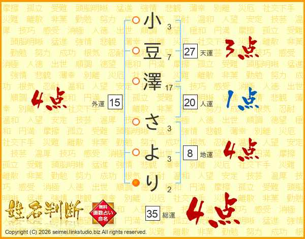 小豆澤さよりさんの総運は35画の4点!