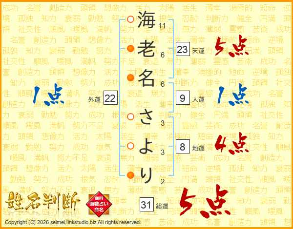 海(11画)老(6画)名(6画) さ(3画)よ(3画)り(2画)