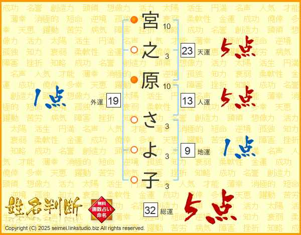 宮(10画)之(3画)原(10画) さ(3画)よ(3画)子(3画)