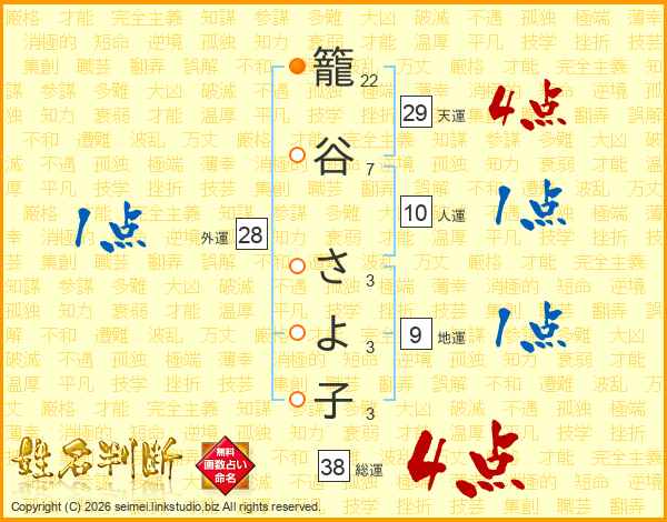 籠谷さよ子さんの総運は38画の4点!