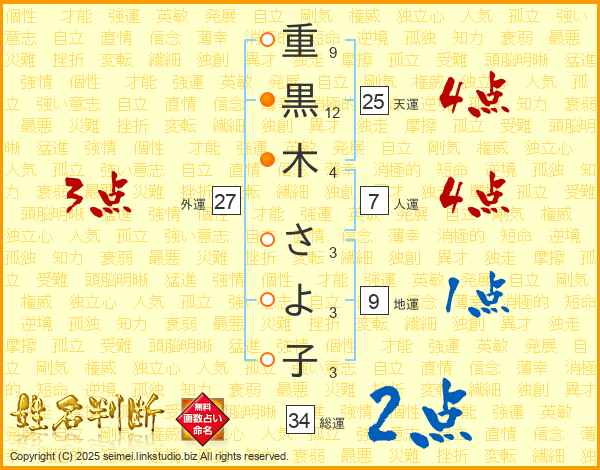 重黒木さよ子さんの総運は34画の2点!