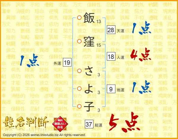 飯窪さよ子さんの総運は37画の5点!