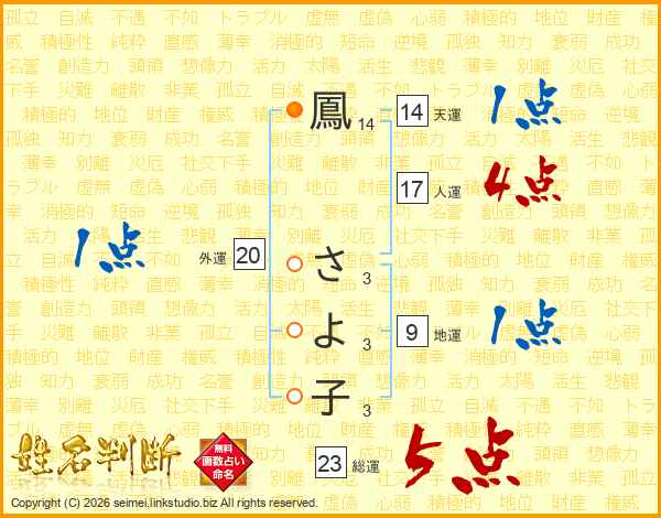 鳳さよ子さんの総運は23画の5点!