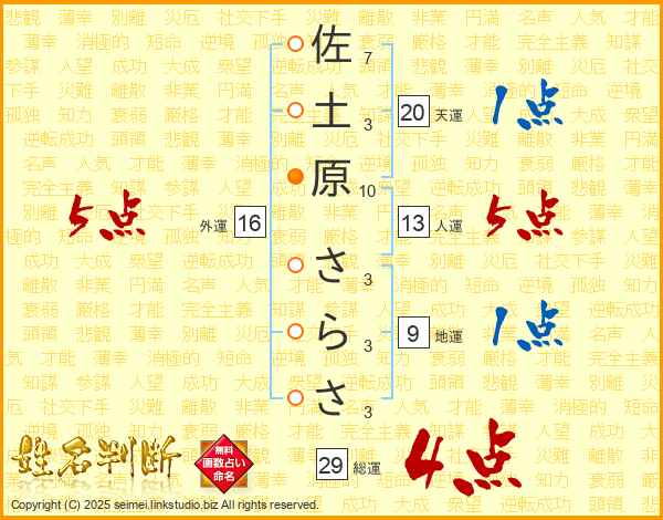 佐(7画)土(3画)原(10画) さ(3画)ら(3画)さ(3画)