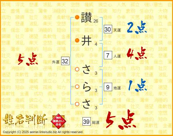 讃(26画)井(4画) さ(3画)ら(3画)さ(3画)