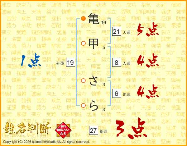 亀甲さらさんの総運は27画の3点!
