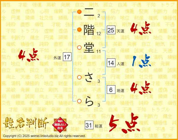 二階堂さらさんの総運は31画の5点!