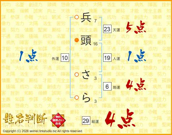 兵頭さらさんの天運は23画の5点!