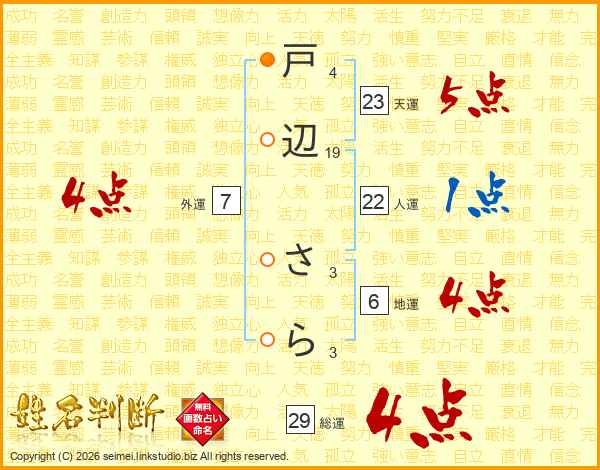 戸(4画)辺(19画) さ(3画)ら(3画)