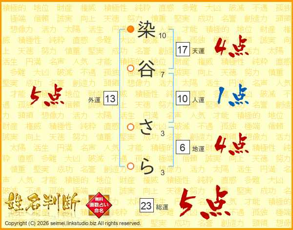 染谷さらさんの総運は23画の5点!