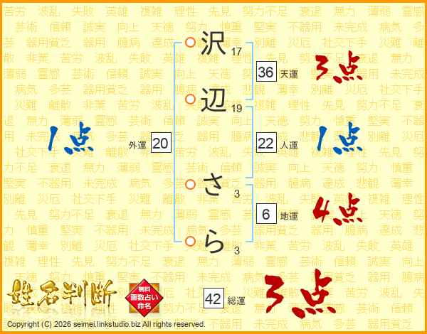 沢辺さらさんの総運は42画の3点!