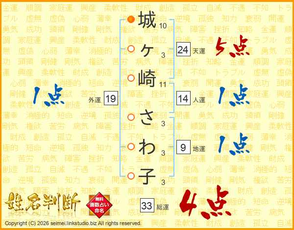 城ヶ崎さわ子さんの総運は33画の4点!