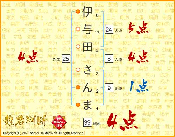 伊(6画)与(13画)田(5画) さ(3画)ん(2画)ま(4画)
