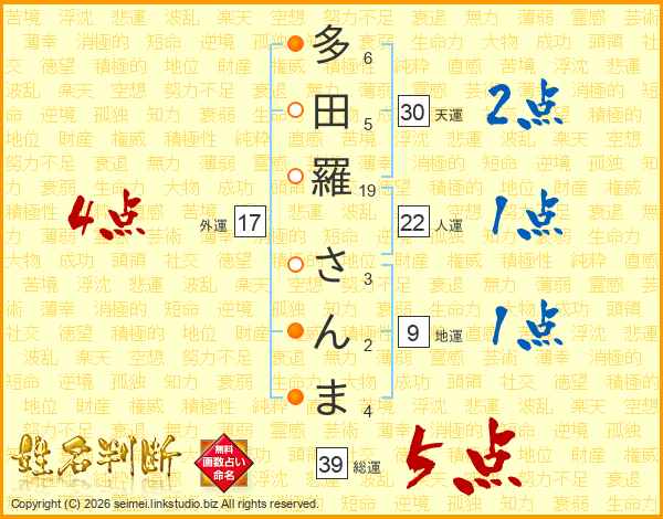 多田羅さんまさんの総運は39画の5点!