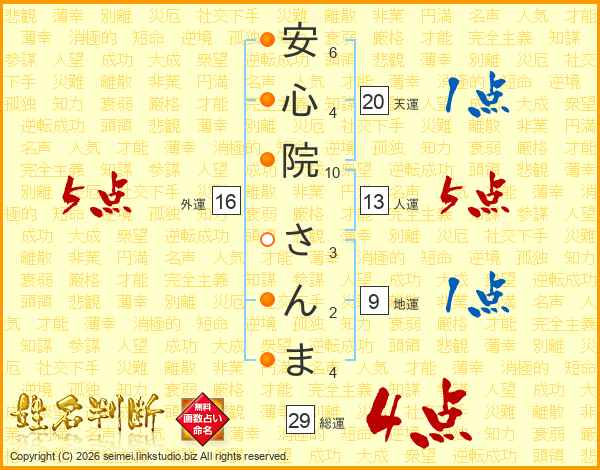 安(6画)心(4画)院(10画) さ(3画)ん(2画)ま(4画)