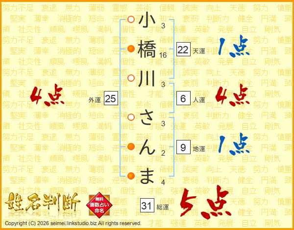 小橋川さんまさんの総運は31画の5点!