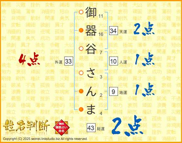 御(11画)器(16画)谷(7画) さ(3画)ん(2画)ま(4画)