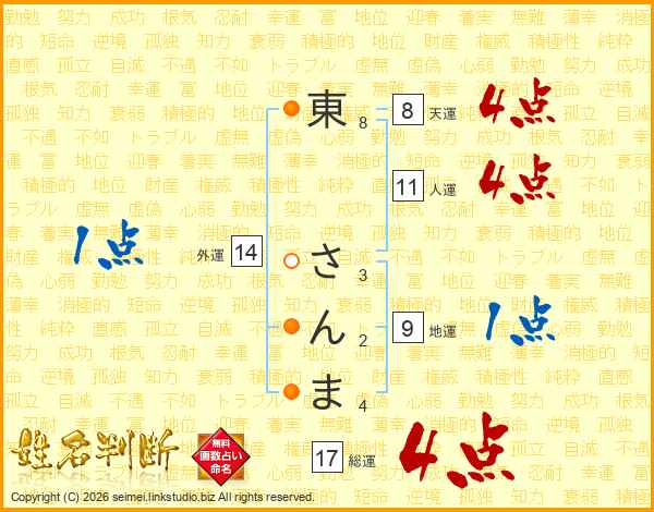 東さんまさんの総運は17画の4点!