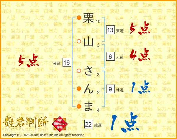 栗山さんまさんの外運は16画の5点!