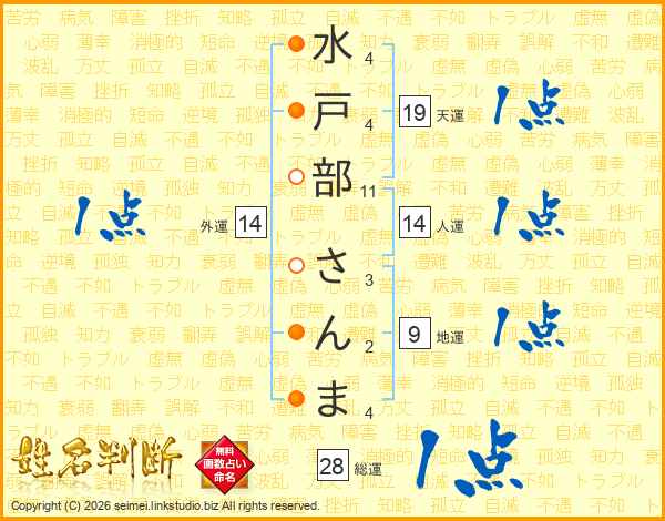水(4画)戸(4画)部(11画) さ(3画)ん(2画)ま(4画)