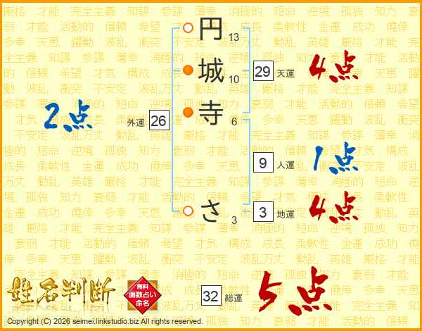 円城寺ささんの総運は32画の5点!