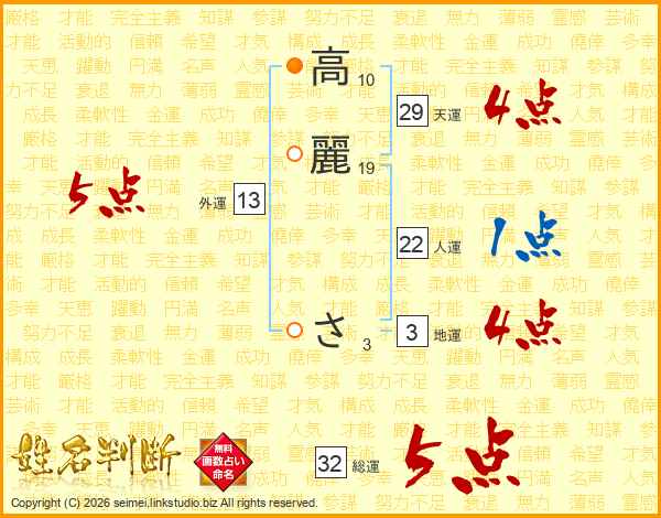 高麗ささんの総運は32画の5点!
