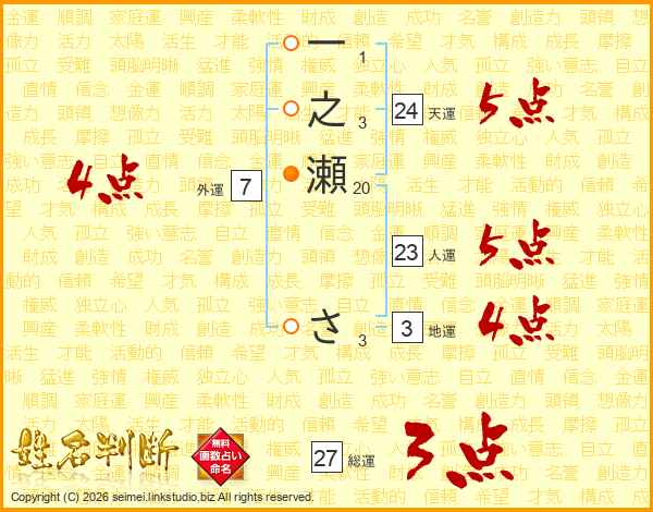 一之瀬ささんの総運は27画の3点!