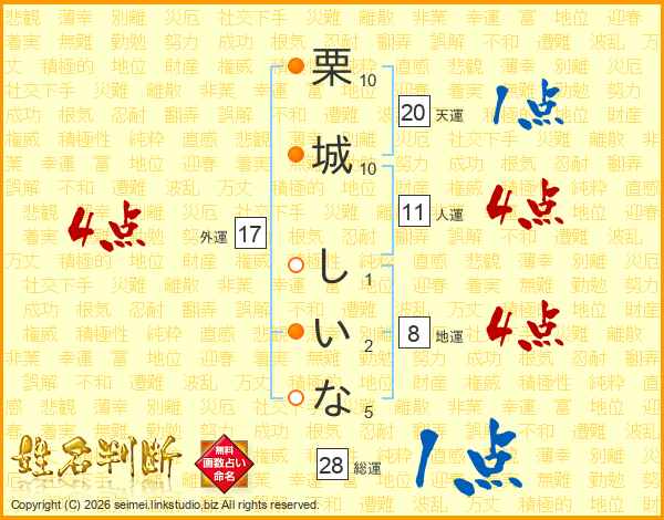 栗城しいなさんの外運は17画の4点!