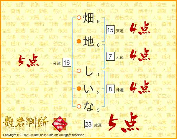 畑地しいなさんの総運は23画の5点!