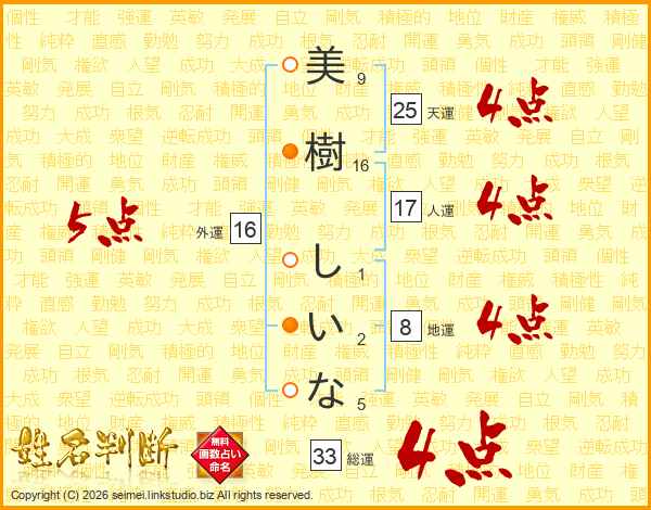 美樹しいなさんの総運は33画の4点!