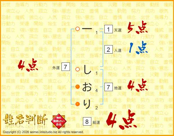 一しおりさんの天運は1画の5点!