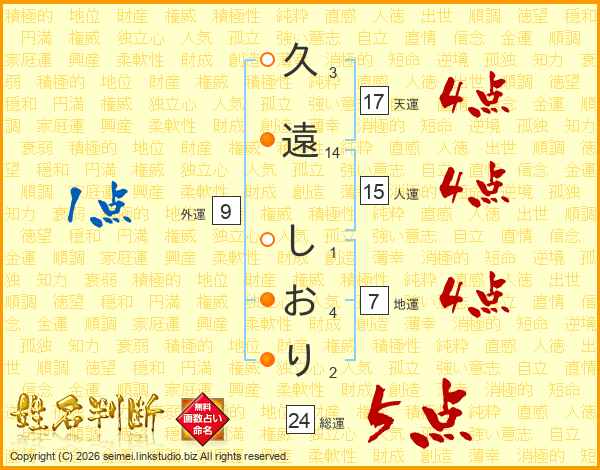 久遠しおりさんの総運は24画の5点!