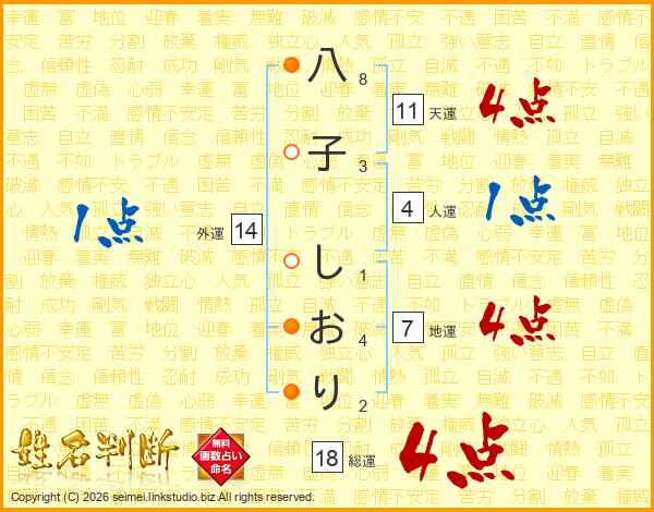 八子しおりさんの総運は18画の4点!