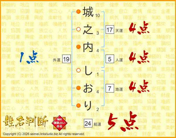 城之内しおりさんの総運は24画の5点!