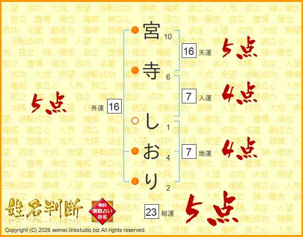 宮寺しおりさんの天運は16画の5点!