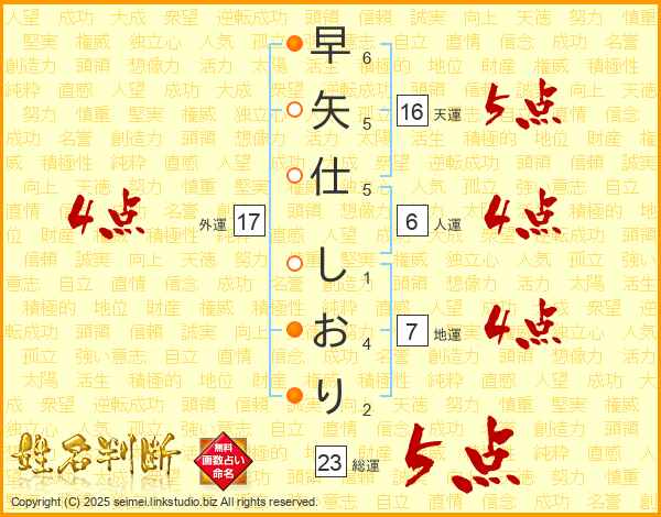 早矢仕しおりさんの総運は23画の5点!