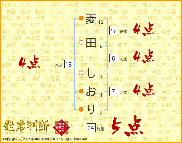 菱田しおりさんの外運は18画の4点!