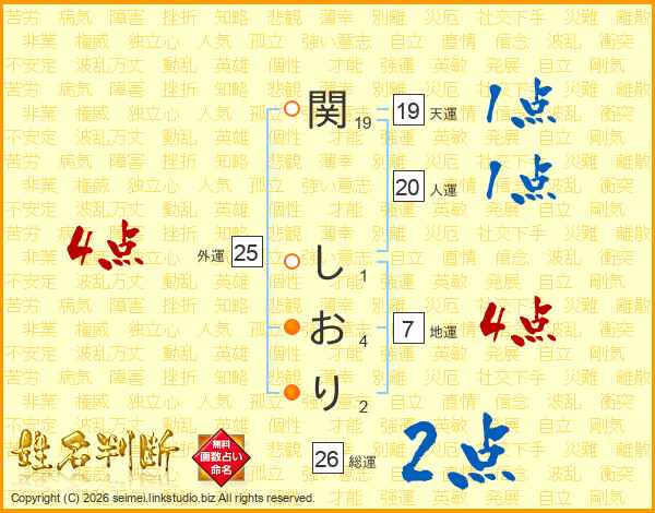 関しおりさんの総運は26画の2点!