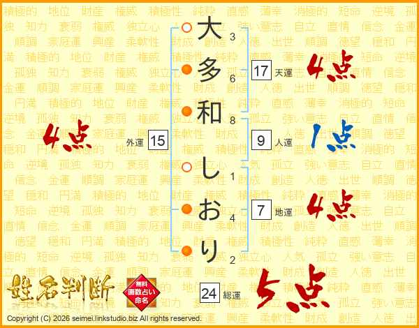 大(3画)多(6画)和(8画) し(1画)お(4画)り(2画)
