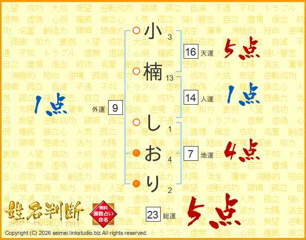小(3画)楠(13画) し(1画)お(4画)り(2画)
