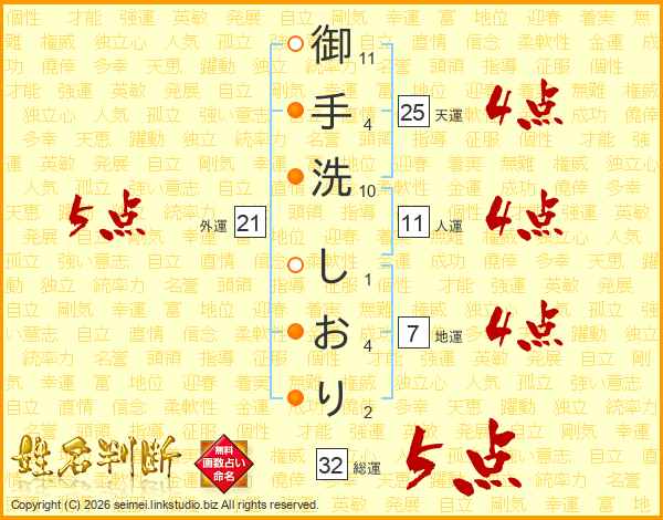 御手洗しおりさんの外運は21画の5点!