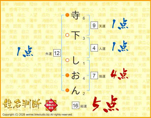寺下しおんさんの総運は16画の5点!