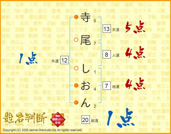 寺尾しおんさんの総運は20画の1点!