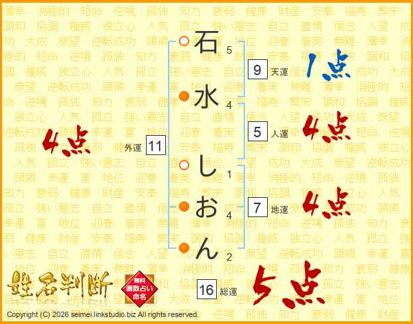 石水しおんさんの総運は16画の5点!