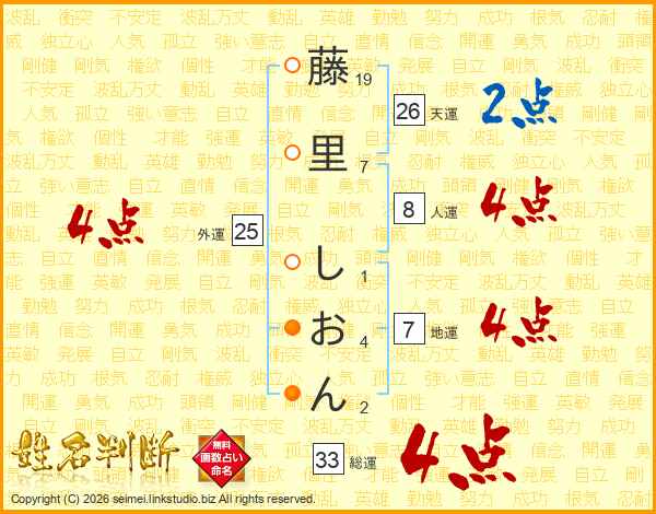 藤里しおんさんの総運は33画の4点!