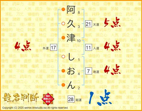 阿久津しおんさんの外運は17画の4点!