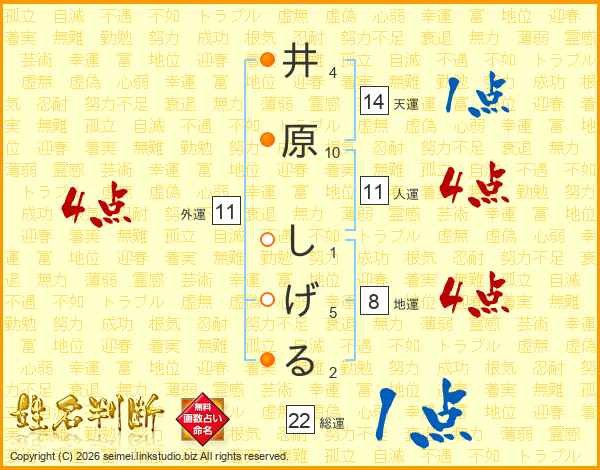 井原しげるさんの総運は22画の1点!