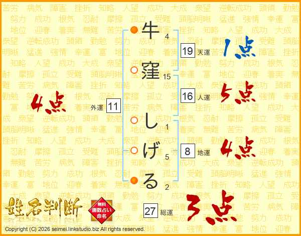 牛窪しげるさんの総運は27画の3点!