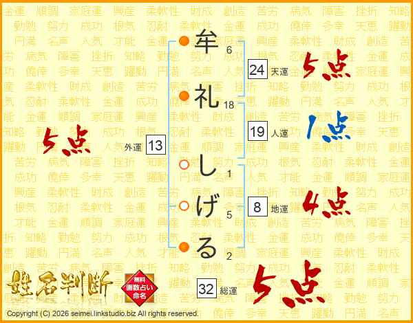 牟礼しげるさんの総運は32画の5点!
