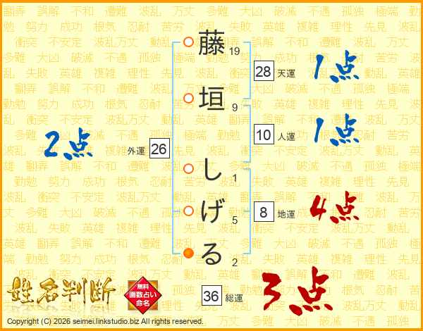 藤垣しげるさんの総運は36画の3点!